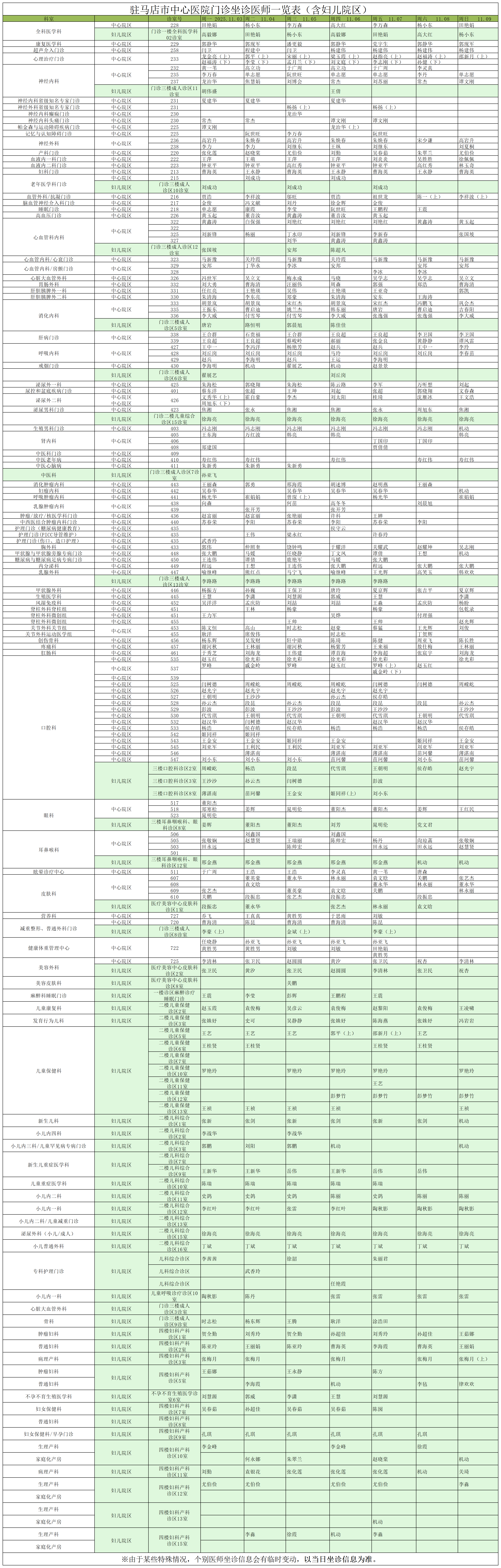 駐馬店市中心醫(yī)院門診坐診信息一覽表(含婦兒院區(qū))