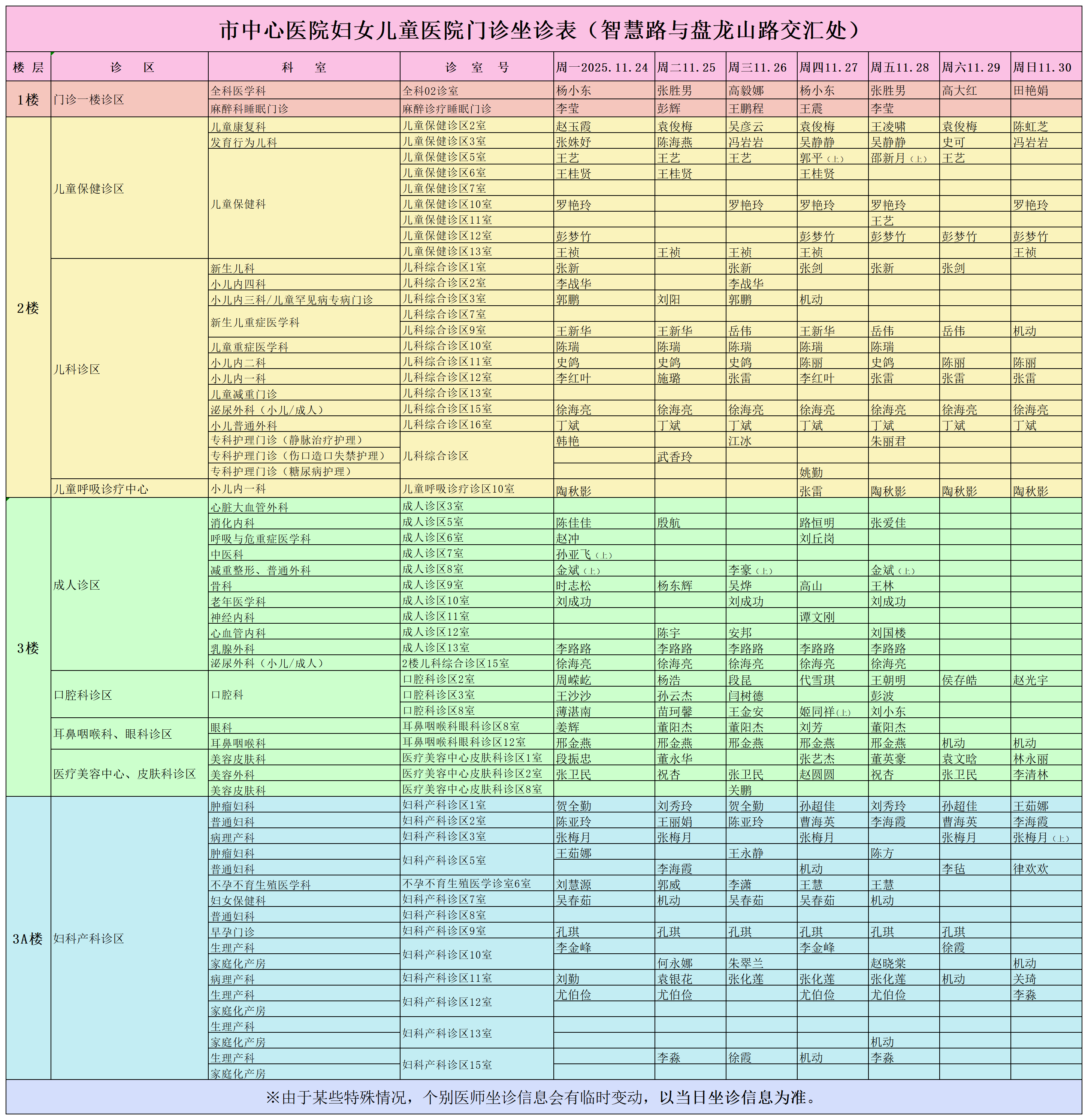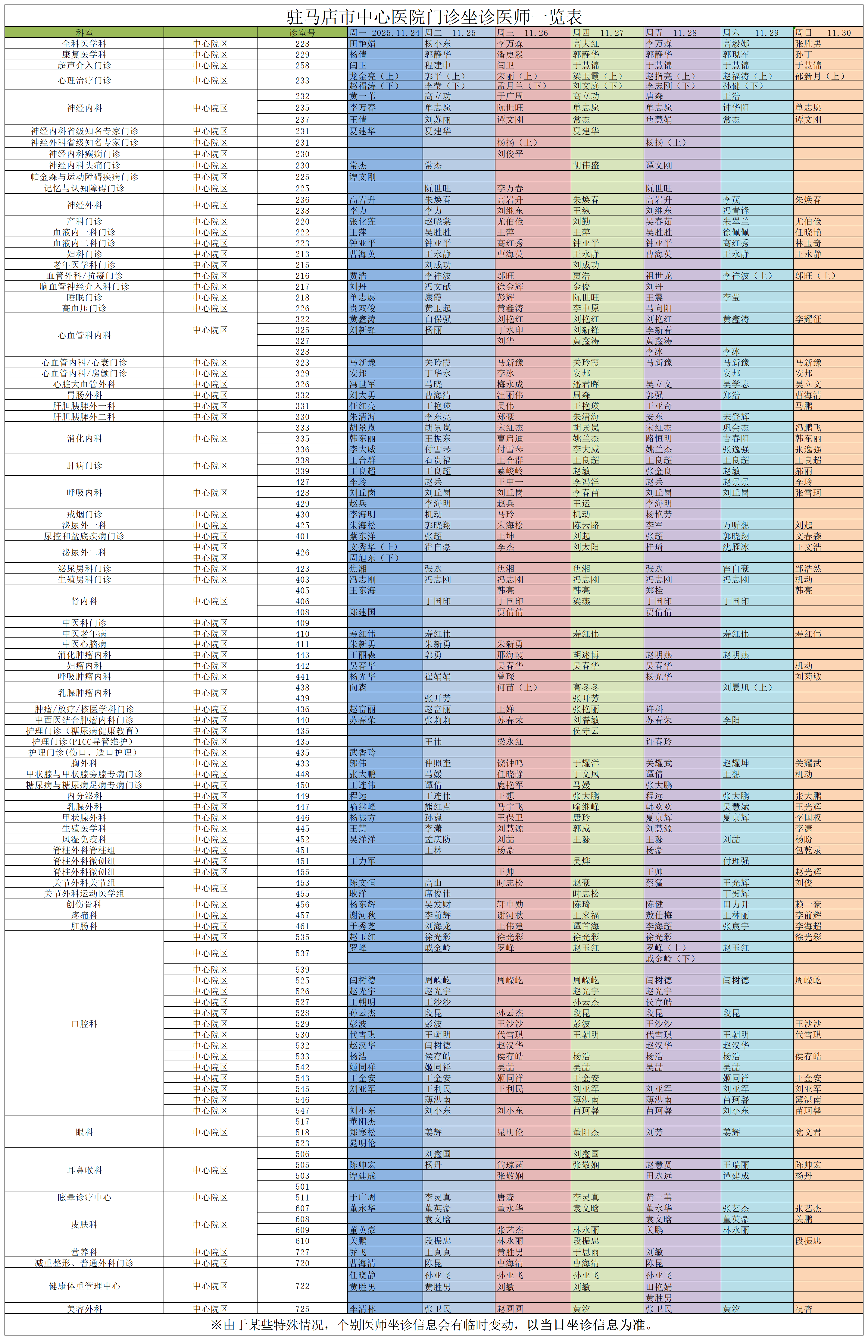 駐馬店市中心醫(yī)院門診坐診信息一覽表(含婦兒院區(qū))