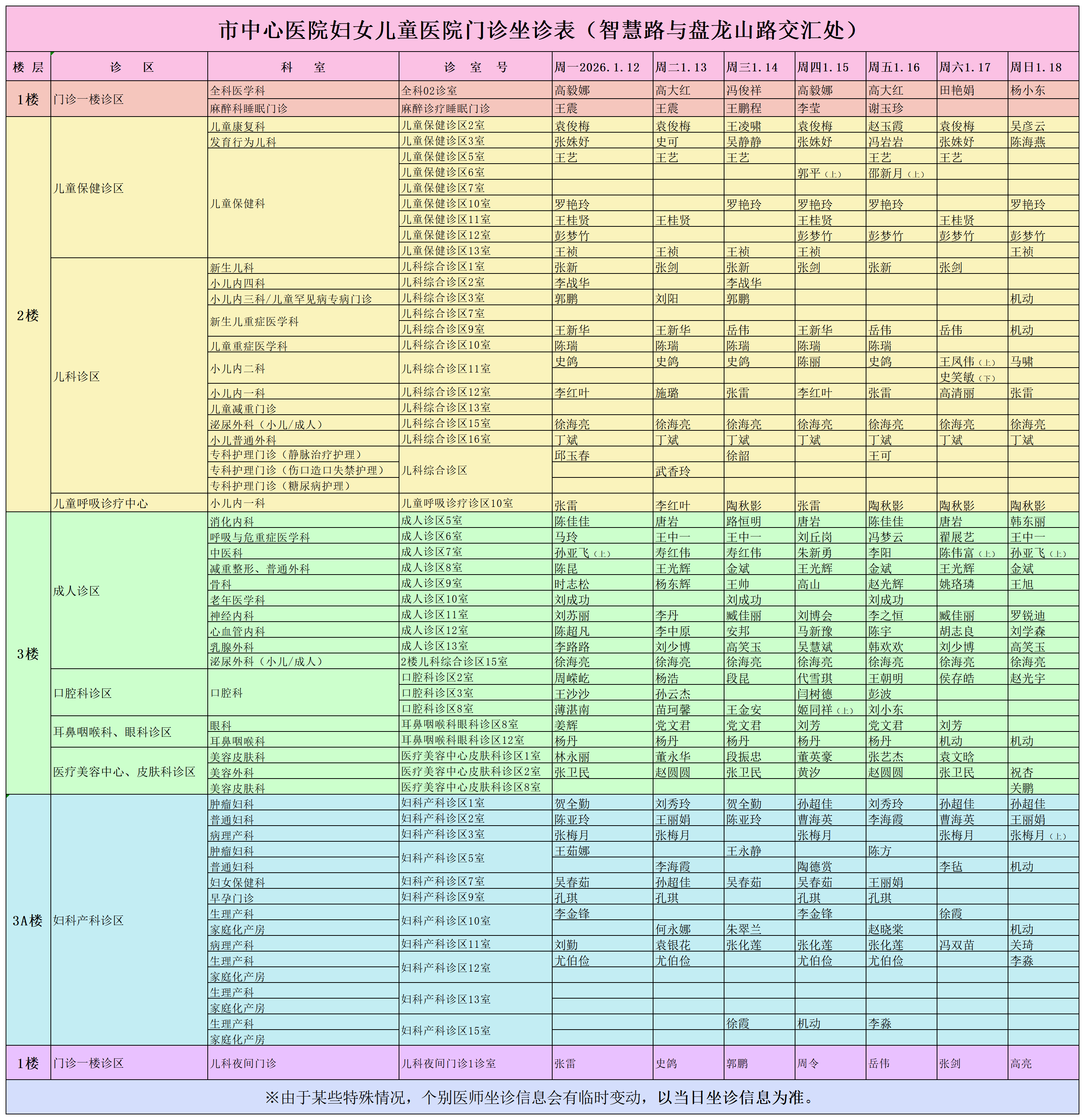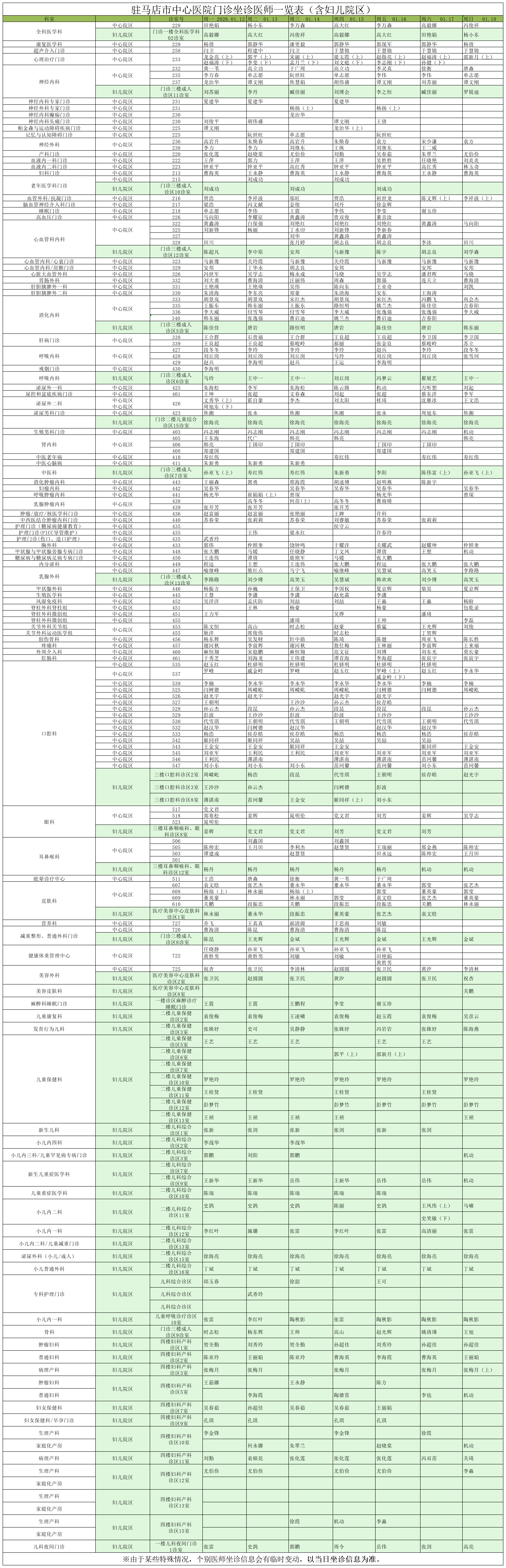 駐馬店市中心醫(yī)院門(mén)診坐診信息一覽表(含婦兒院區(qū))
